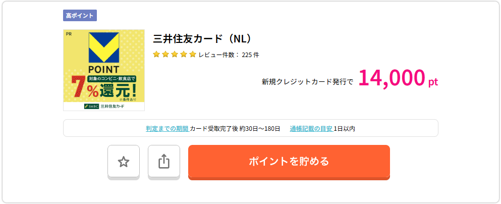 ハピタス経由で三井住友カード(NL)発行で14,000pt獲得できる案件となります。