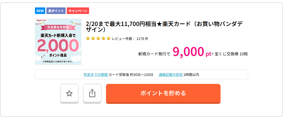 - クレカ発行や口座開設などの条件達成