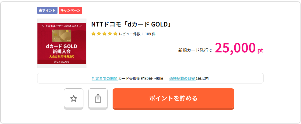 ハピタス経由でdカードゴールドを発行すると、25,000ptの獲得となります。ゴールドカードは基本的には年会費が10,000円ほどかかりますが、空港のラウンジが無料で使えたり、海外旅行保険が付いているなど特典が豊富です。今回は高還元の25000ptですので、カードを発行後に解約でもいいと思いますが、dカードゴールドカード×マネックス証券のクレカ投資は還元率が高いのでこちらも持っておきたいカードの一つです。
