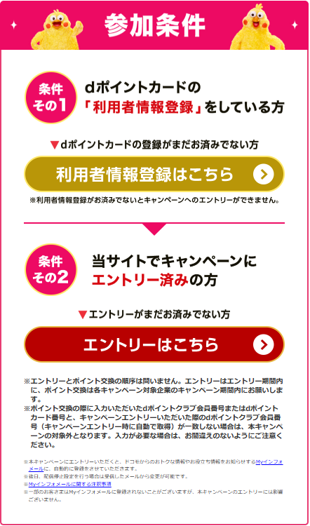 たったの2stepで簡単です。dポイント利用者登録&エントリーだけです。