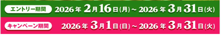 ただしエントリー期間とキャンペーン期間が異なりますので、エントリーを忘れないようにお願いします。とりあえず今からエントリーだけでもしてください。キャンペーンは3/1からスタートですよ!