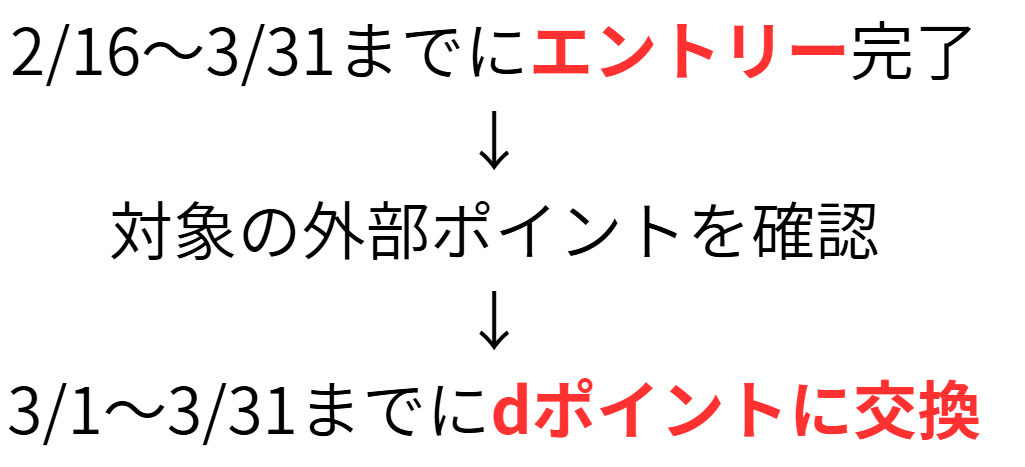 今回のdポイント増量キャンペーンの手順は以下の通り